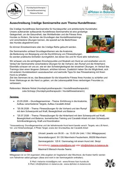 - 12.09.+13.09.2026 - Wochenendseminar Hundefitness beim SV OG Mannheim-Feudenheim